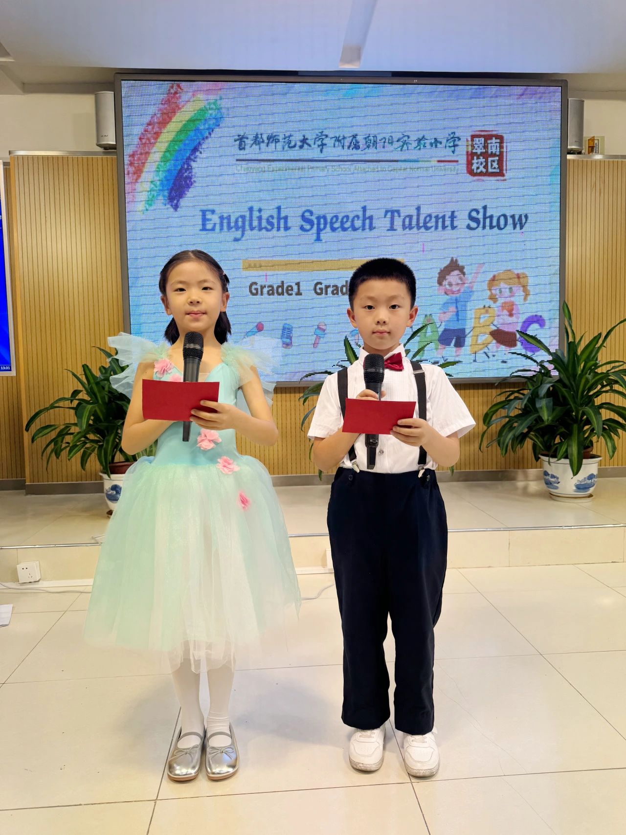 为了营造我校的英语学习氛围,丰富学生校园生活,践行“让每个人都精彩”的办学理念,首师附小翠南校区于5月24日中午举办“英文开口秀”活动。