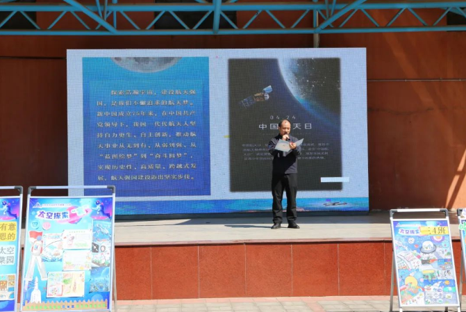 活动特邀航天一部办公室副主任兼集团公司数字航天建设专班成员寇萌叔叔为全校师生做国旗下讲话。作为拥有十年航天经验的高级工程师,寇萌叔叔以自身成长经历为脉络,讲述了航天人“三天三夜判读20000帧图像数据”的攻坚故事,深情阐释“两弹一星”精神、载人航天精神的深刻内涵。他寄语同学们要做“心怀家国的追梦人”,将个人理想融入国家发展;做“脚踏实地的奋斗者”,以迎难而上的毅力攻克学习难关;做“宇宙奥秘的探索者”,从观察自然、阅读科普开启探索之旅。寇叔叔的讲话赢得全场热烈掌声,在孩子们心中种下“航天梦”的种子。