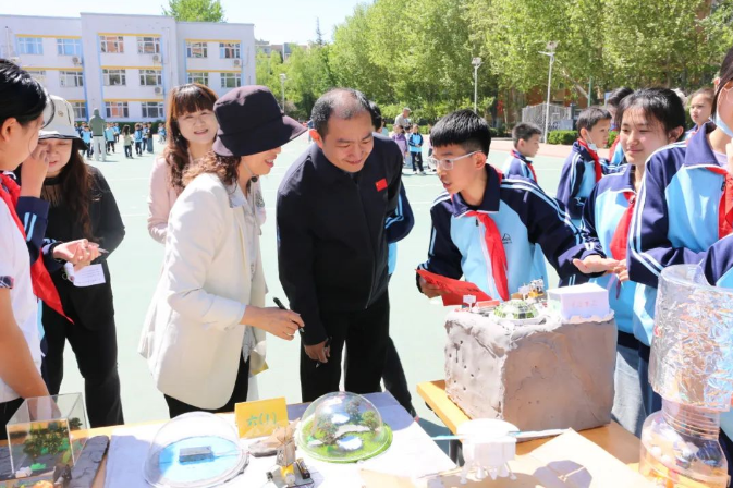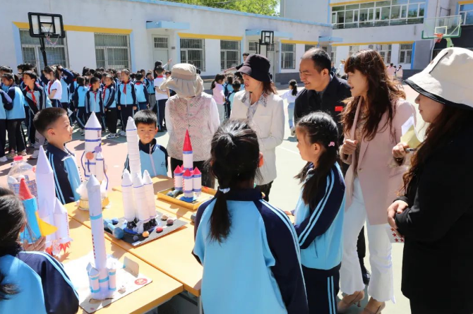 在全校齐诵校训的铿锵声中,仪式圆满落幕。活动后,各班学生有序参观航天项目作品,小评委们为创意作品打分,将理论学习转化为实践体验。
