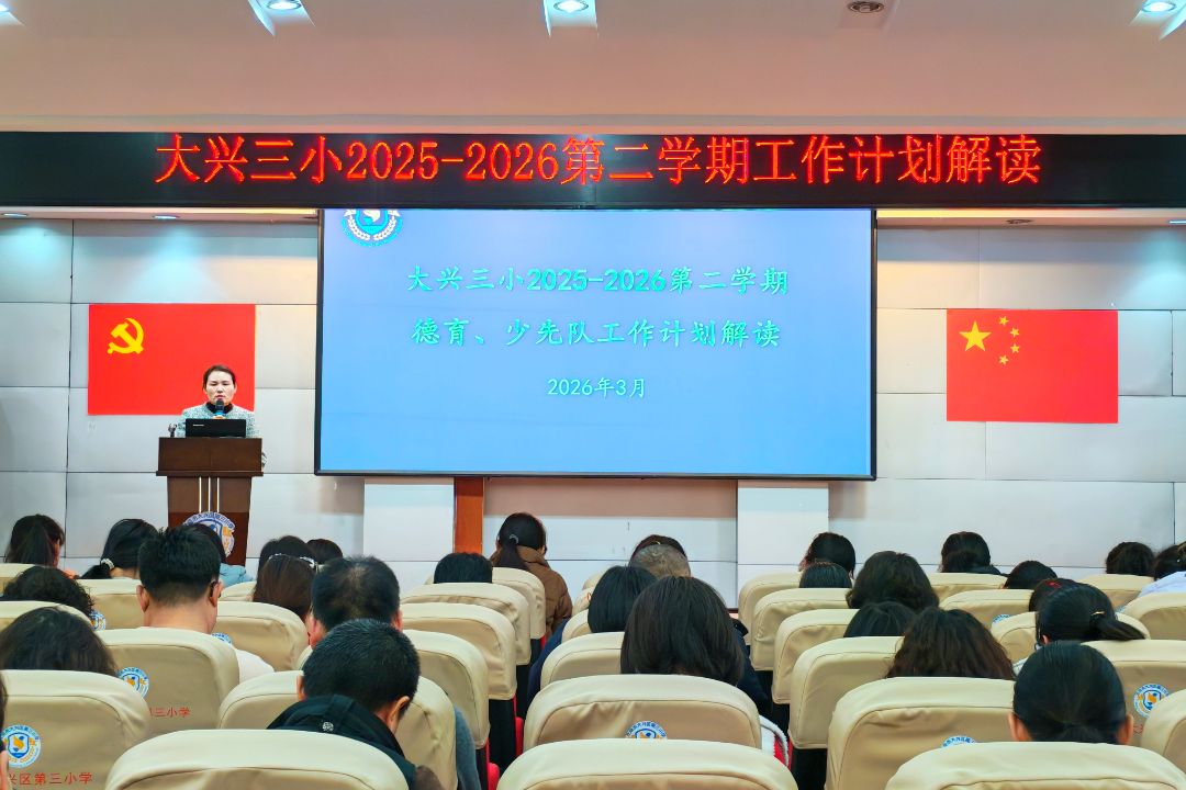 为深入贯彻市区教委精神,全面落实"建设教育强区、落实教育高质量发展行动方案"核心任务,扎实推进"五项行动",进一步统一思想、明确目标,大兴三小于2026年3月4日召开学校工作计划解读会。